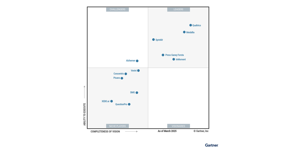 [1] Gartner, “Magic Quadrant for Voice of the Customer Platforms,” Deborah Alvord, Maria Marino, 16 April 2025.