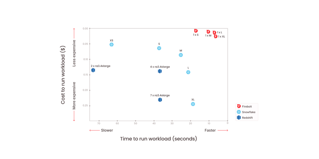 - To achieve Firebolt's performance characteristics, Snowflake is 37.5 times more expensive, whereas Redshift and BigQuery failed to achieve anywhere close to similar performance numbers.