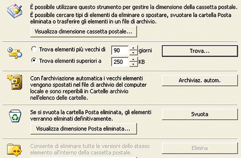 All’interno di Outlook opera una procedura che consente di procedere al riordino delle cassette di posta. In particolare, è possibile visualizzarne le dimensioni, nonché isolare i messaggi in funzione delle loro data e del loro “peso”. Aprire il menu S …