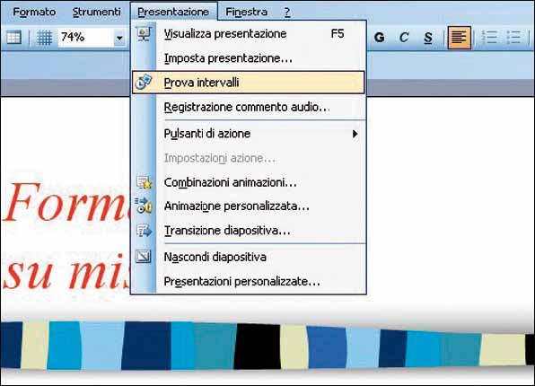 Quando una presentazione viene eseguita senza prevedere la presenza di uno speaker è necessario definire in anticipo i tempi di permanenza sullo schermo delle singole slide. Questa operazione può essere eseguita facilmente. Accedere al menu Presentazio …