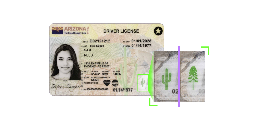 Dynaprint® is a dynamic security feature consisting of two different images printed with lenticular technology. Depending on the angle of observation, only one image is visible at a time. Like all other dynamic security features, Dynaprint is crucial for securing identity documents from tampering, since it’s a tricky task to fake it without special equipment. Previously, it was feasible to verify Dynaprint only on-site with the help of special equipment. However, Regula has made it possible to check it online via a smartphone to ensure you are dealing with a live physical ID.