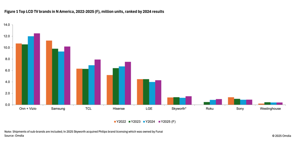 LONDON--(BUSINESS WIRE)--#LG--Omdia's TV Display & OEM Intelligence Service reveals that leading US TV brands were poised for aggressive shipment growth in 2025 (see Figure 1), however, shifting geopolitical tensions and tariff changes are set to dramatically alter the competitive landscape of the US TV market. With their expansive manufacturing capacities in Mexico, Samsung and LG are positioned to gain US market share from Chinese brands like Hisense and TCL, whose growth could be stymied by their limited manufacturing capacity in Mexico.