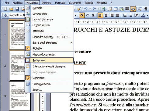 Se si sta lavorando ad un documento articolato in numerose pagine, e in particolare contenente molte immagini, c’è un’alternativa grafica all’opzione Mappa documento, che consente di individuare e accedere ad una pagina riconoscendola attraverso la cor …
