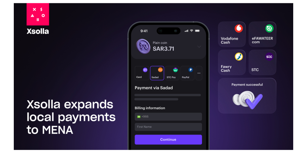 LOS ANGELES--(BUSINESS WIRE)--Xsolla, a leading global video game commerce company, has introduced 11 new local payment methods in the Middle East and North Africa (MENA) region. These payment methods include Fawry Cash, Aman, Masary, Momken, Vodafone Wallet, Orange Cash Wallet, and Mobile & Banking Wallets in Egypt; Sadad in Saudi Arabia; eFAWATEERcom in Jordan; and STC Direct Carrier Billing (DCB) in Bahrain. These strategic additions reflect Xsolla’s commitment to providing game developers and publishers with the tools to navigate and thrive in this rapidly growing and uniquely challenging market - in any geography around the world.