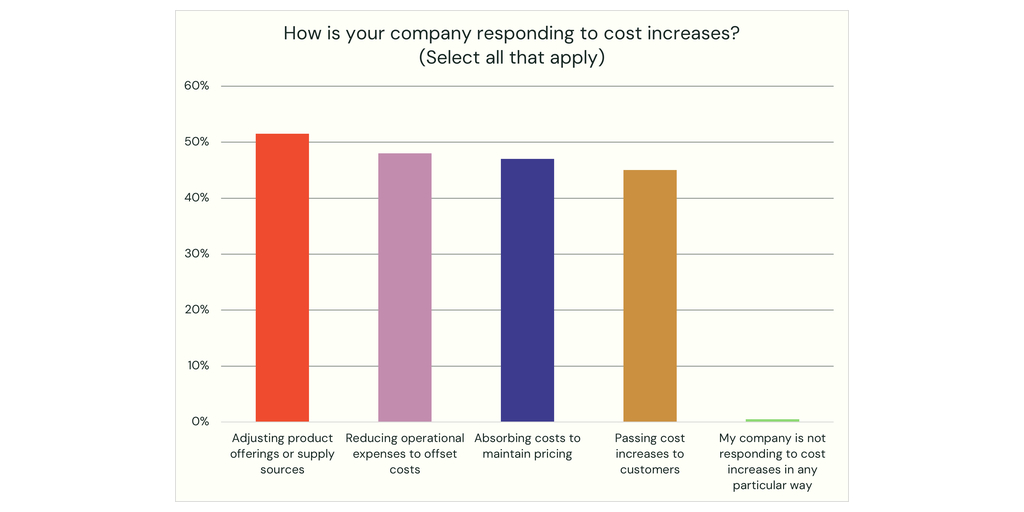 42% report shifting suppliers or sourcing regions in response to tariff changes and 45% of businesses are reducing operational expenses to offset tariff costs