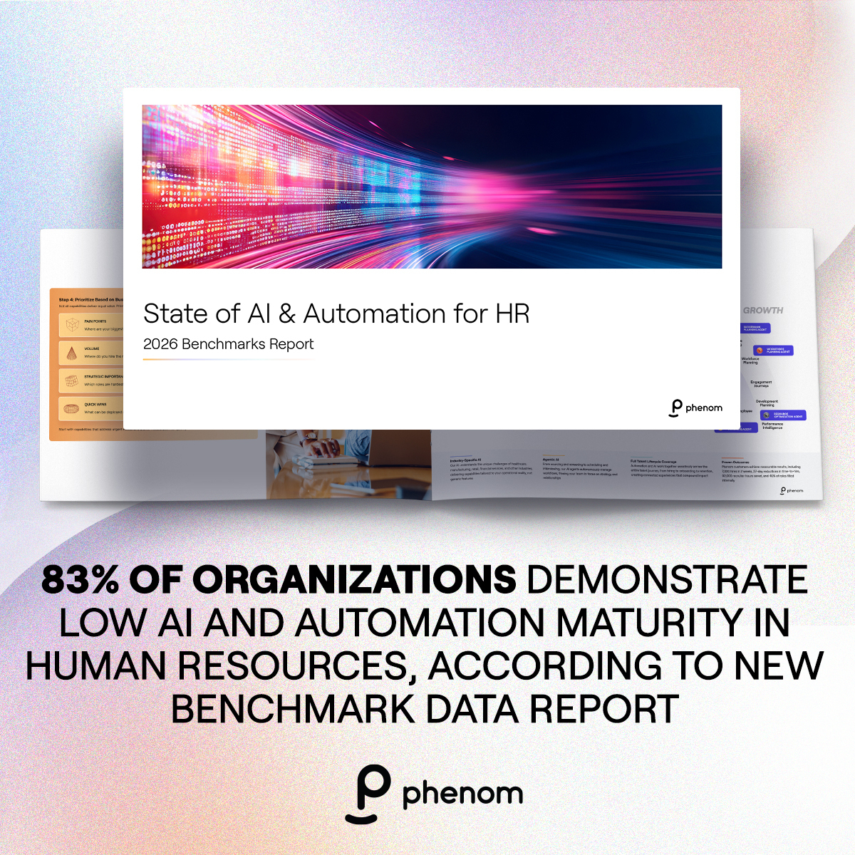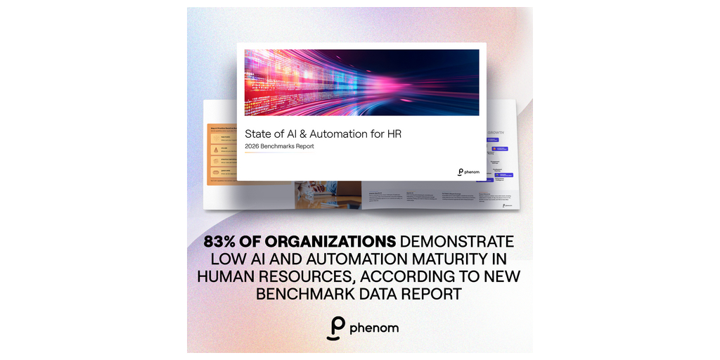 PHILADELPHIA--(BUSINESS WIRE)--#HRTech--Phenom, the applied AI company dedicated to human resources, published its inaugural State of AI & Automation for HR: 2026 Benchmarks Report, which analyzes AI (intelligence) and automation maturity in human resources across 12+ industries. The data reveals a gap between aspiration and using AI effectively: while most organizations adopted some level of AI and automation, significant opportunity remains to advance from experimentation to impact throughout hiring, development and retention.
