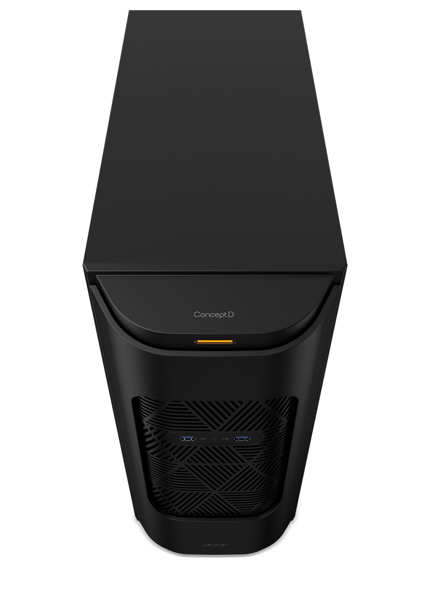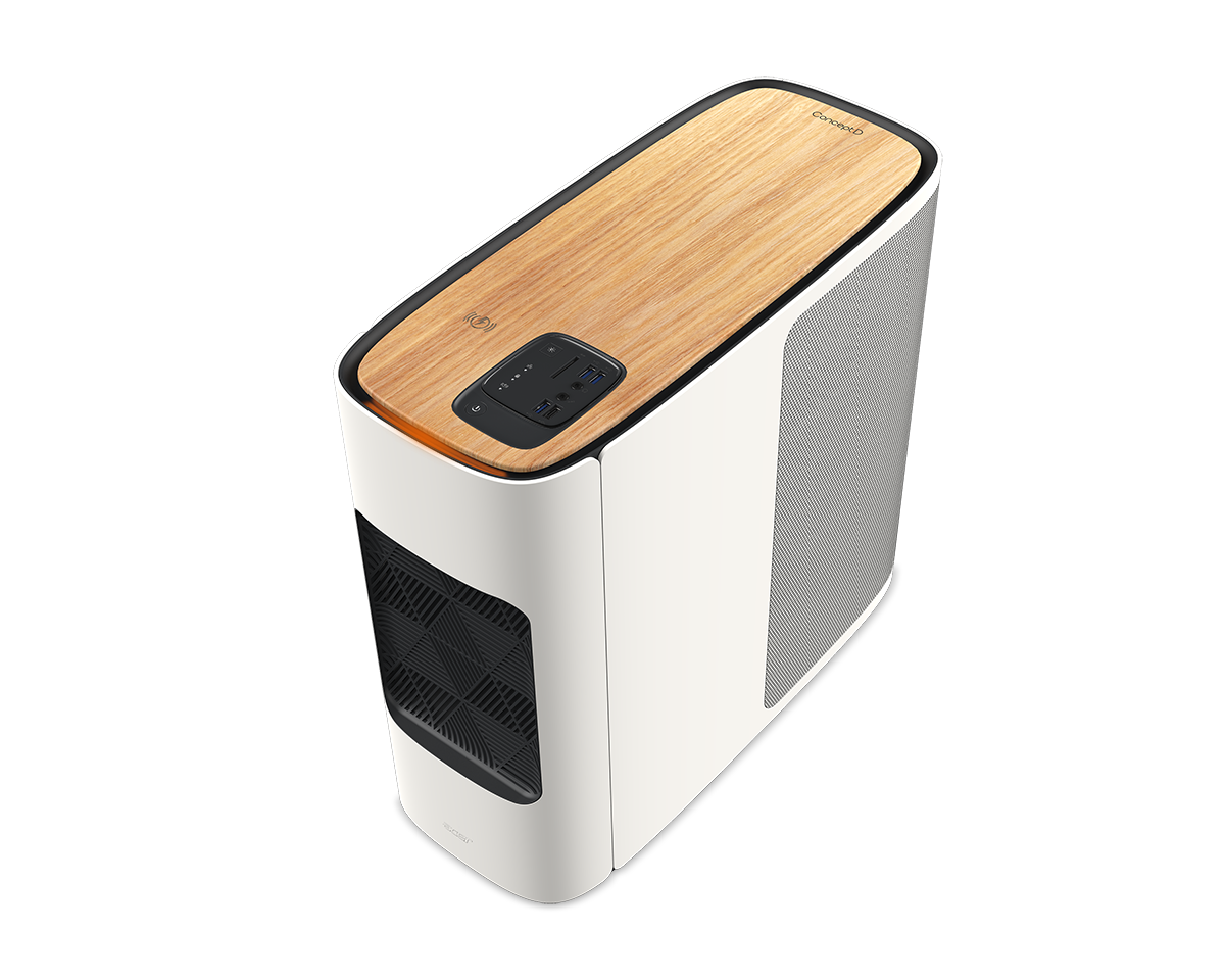 Il design tower dell’Acer ConceptD 500 si presenta in una finitura bianca e con linee curve morbide di ispirazione minimalista. Il PC tower è compatto per adattarsi a quasi tutti gli spazi di lavoro. La superficie superiore presenta un motivo ispirato alla venatura del legno. Gli utenti possono inoltre caricare i dispositivi compatibili Qi in modalità wireless.