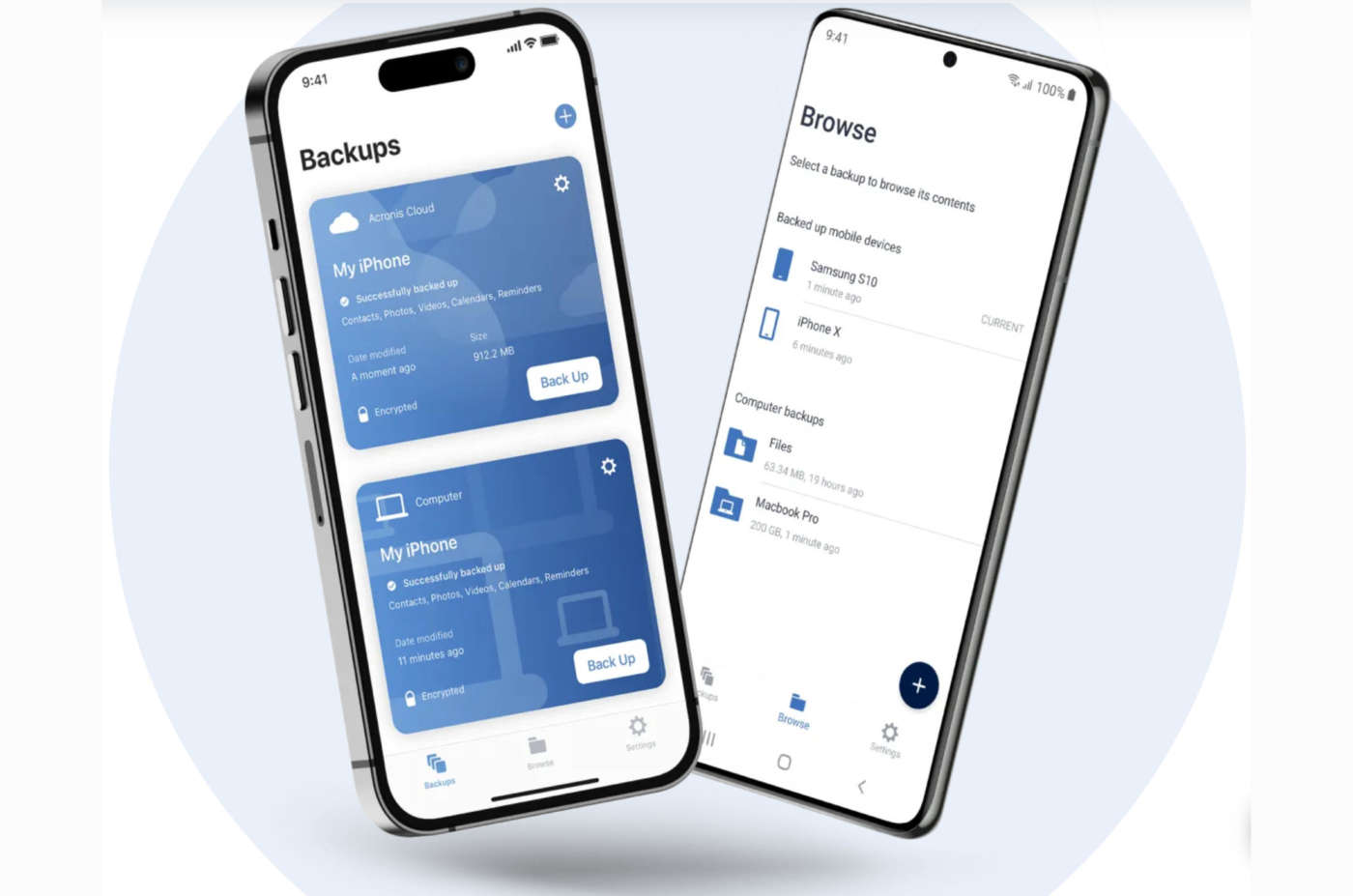 - App mobile e backup: in genere i produttori di dispositivi mobili aggiungono alcune opzioni di storage che spesso però dipendono da una specifica piattaforma, mentre nei gruppi familiari si usano più dispositivi e quindi anche sistemi operativi diversi. Acronis Cyber Protect Home Office offre capacità di storage per qualsiasi sistema operativo e crittografia avanzata, per mantenere al sicuro le rubriche, i calendari, le foto, i file e i dati archiviati nei dispositivi mobili. La soluzione include anche l’app Acronis Mobile, che permette all’utente di accedere ai propri dati su dispositivo da qualsiasi posizione, tramite l’app stessa o l’interfaccia web.