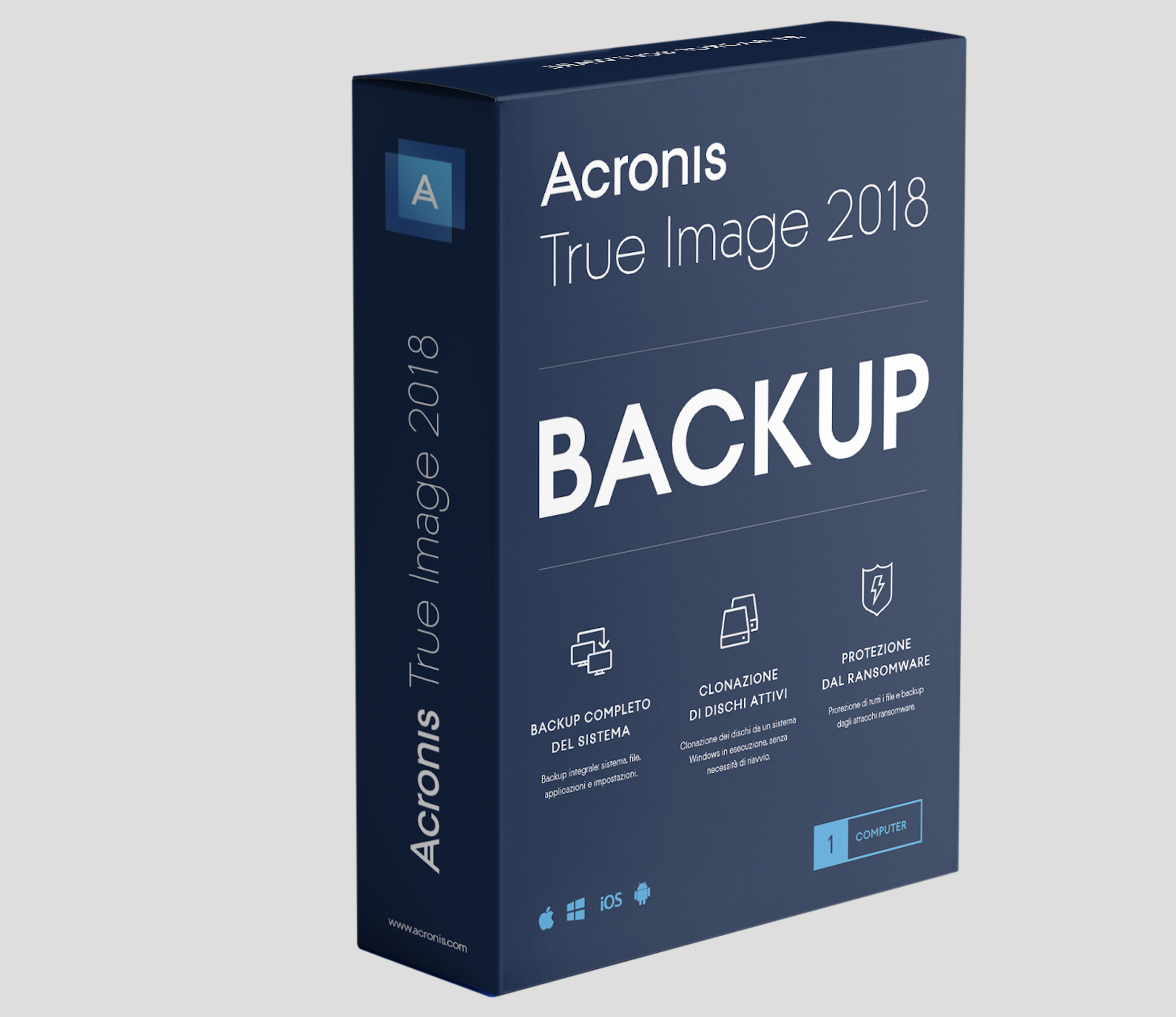 Sono disponibili tre edizioni di Acronis True Image 2018 che si rivolgono ai vari utilizzi e preferenze dei clienti. Tutte le versioni includono Acronis Active Protection contro i ransomware e coprono un numero illimitato di dispositivi mobili.