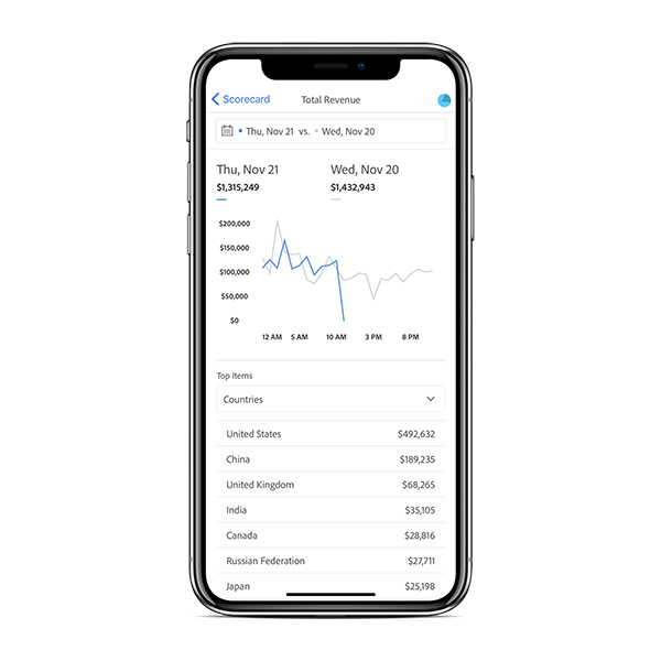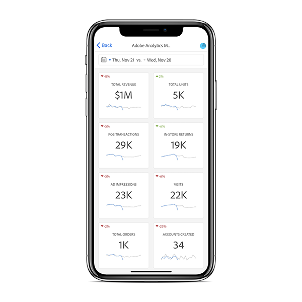 L’app mobile ufficiale di Adobe Analytics, disponibile per iOS e Android sui rispettivi store, fornisce insight interattivi, personalizzati in base alle esigenze individuali e accessibili con pochi e semplici tocchi.
