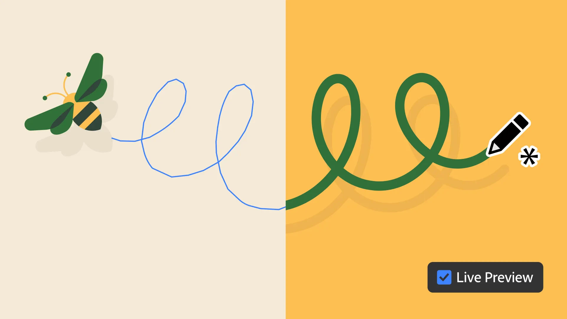 Strumento Matita migliorato con live preview. – Lo strumento Matita, che consente di creare linee e forme naturali disegnate a mano con una precisione perfetta al pixel, offre ora la possibilità di vedere ciò che si sta disegnando mentre lo si disegna, per un’esperienza più intuitiva e risultati precisi. Applica dinamicamente gli aggiornamenti dell’aspetto, esegue istantaneamente il rendering di effetti e stili e applica l’adattamento delle curve per levigare e perfezionare i tratti in tempo reale.