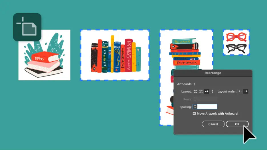 Riguardo ai flussi di lavoro principali dell’artboard, sono state aggiunte nuove scorciatoie da tastiera per velocizzare i workflow sulla tavola da disegno. Poi, è possibile riordinare le tavole da disegno selezionate e posizionare i layout delle tavole in qualsiasi punto dell’area di lavoro con un controllo preciso per organizzare meglio il progetto. Inoltre, Illustrator ora ricorda le impostazioni di esportazione all’interno delle sessioni e tra le sessioni, in modo da non doverle aggiornare ripetutamente.