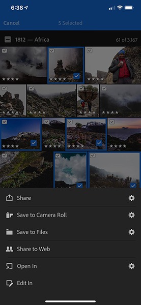 Con l’update di Lightroom per iOS (versione 4.2) è infatti possibile condividere foto specifiche anziché un intero album. Quindi ora, invece di creare un album e condividerlo, l’utente può selezionare un certo numero di foto a piacere e condividerle sul web. Come ogni altra condivisione web, l’utente può controllare se le persone con cui condivide il link possono scaricare o vedere i metadati delle foto.