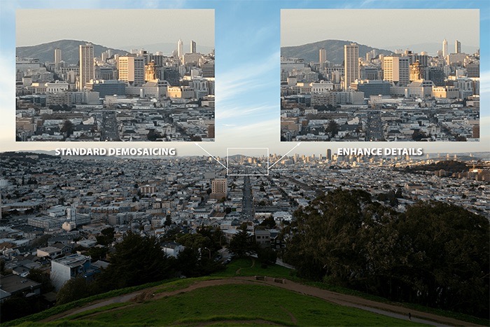 Questa nuova funzionalità adotta un approccio completamente nuovo alla demosaicizzazione delle foto raw. La demosaicizzazione è un processo integrante del processamento raw e funziona a livello di pixel. Il processo converte le informazioni acquisite da una fotocamera nella rappresentazione dell’immagine come ci aspettiamo di vederla.