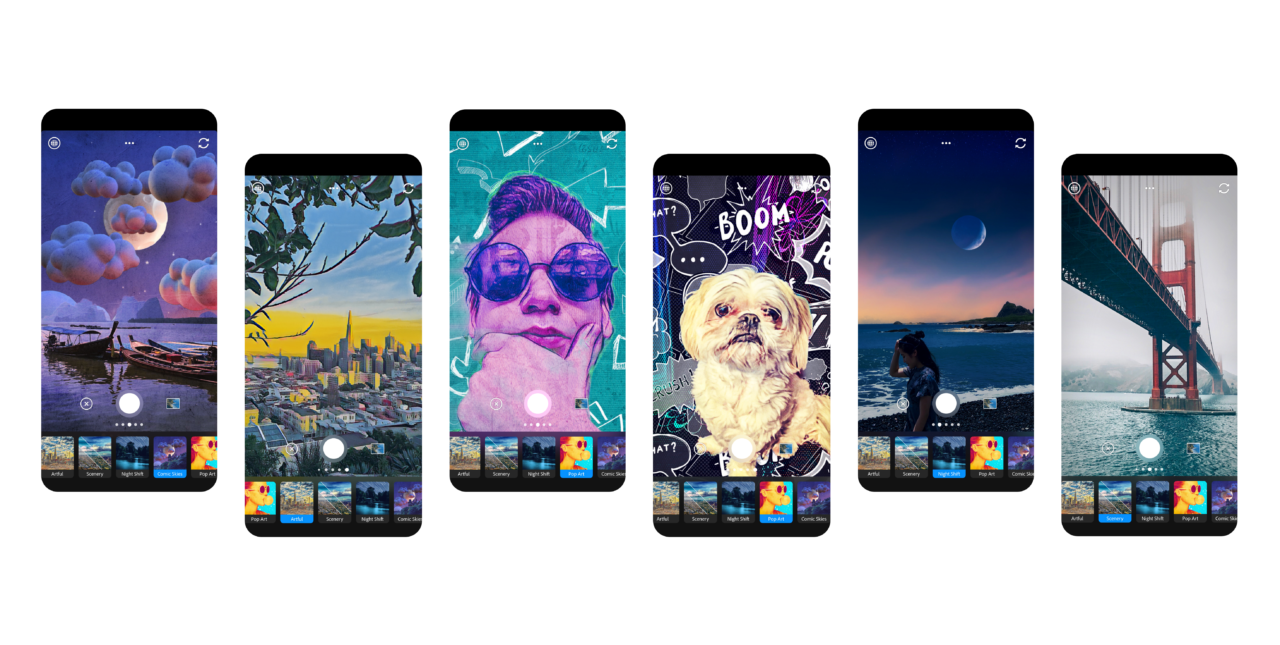 Photoshop Camera consente di catturare, modificare e condividere foto usando tecnologia in tempo reale in “stile Photoshop”, con strumenti ed effetti che sfruttano l’intelligenza artificiale di Adobe Sensei. Grazie a quest’ultima, l’app è in grado di riconoscere istantaneamente il soggetto della foto e di fornire suggerimenti, così come di applicare automaticamente delle speciali funzionalità al momento dello scatto, nonché regolazioni complesse sulle immagini.