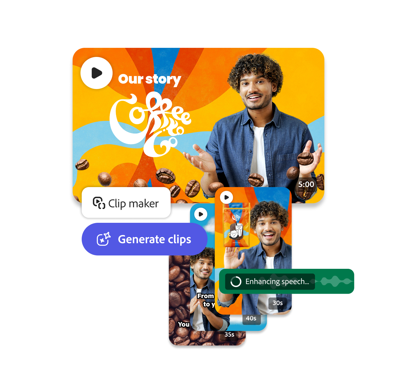 ClipmakerGli upgrade di Express offrono strumenti avanzati per il video, l’animazione e l’on-brand che consentono ai creatori di fare di più con i loro progetti, illustrazioni e filmati. Tra questi, Clip Maker per convertire istantaneamente lunghi filmati in clip di lunghezza social; Dynamic Animation per animare immagini fisse con un solo clic; Enhance Speech per rimuovere i rumori di sottofondo che distraggono per ottenere un audio di qualità professionale; Generate Video per utilizzare prompt di testo e immagini per generare b-roll o filmati di background personalizzati e sicuri dal punto di vista commerciale; e Generate Similar per generare istantaneamente una moltitudine di variazioni di un’immagine di riferimento. Le nuove funzioni aiutano i professionisti della creatività a lavorare rapidamente su nuovi mezzi di comunicazione per estendere la portata e l’impatto dei loro contenuti e facilitano i piccoli imprenditori, gli insegnanti, gli esperti di marketing e altri a migliorare la qualità e l’impatto delle loro risorse social, digitali e reali.
