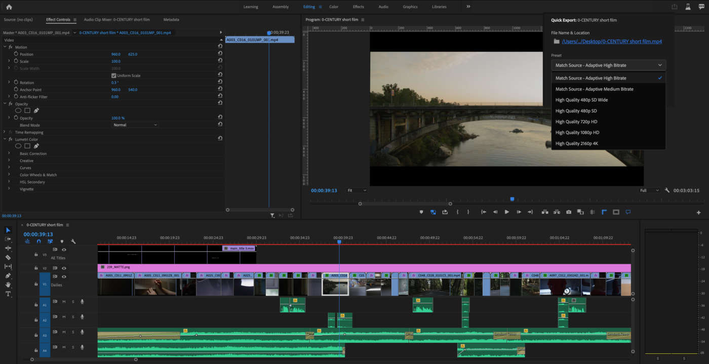 È invece in beta pubblica la funzione Quick Export, che offre un facile accesso alle impostazioni di esportazione più popolari e utilizzate di frequente, direttamente dalla header bar in Premiere Pro. Gli editor possono utilizzare l’impostazione predefinita H.264 ad alta qualità oppure scegliere da una breve lista di preset H.264, che consentono di ridurre le dimensioni dei file di esportazione.