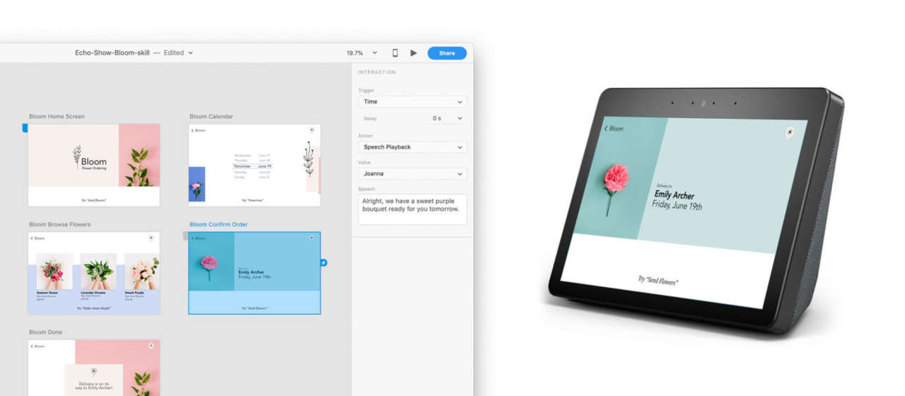 Per quanto riguarda la prototipazione di esperienze vocali, arriva ora una nuova, importante funzionalità, che riguarda l’integrazione tra Adobe XD e Amazon Alexa. I nuovi strumenti introdotti dalla casa di San Jose permettono ai designer di user experience di esportare e avere un’anteprima dei prototipi vocali su qualsiasi dispositivo abilitato per Alexa.