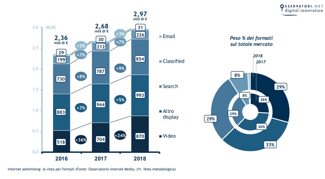 Buone notizie per quanto riguarda il panorama media e advertising, soprattutto su Internet. Il mercato pubblicitario complessivo in Italia chiude infatti il 2018 a quota 8,2 miliardi di euro. Dunque in crescita del 4% rispetto al 2017.