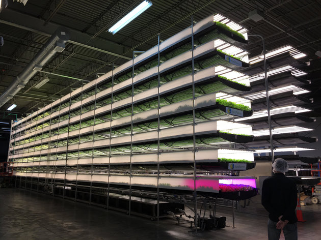 Siamo a Newark, nel New Jersey a due passi da New York. Qui c’è una fattoria di Aerofarm che si estende al coperto su 22.000 metri quadrati con 12 livelli di spazio coltivabile con vari tipi di insalata, cavoli, foglie di senape e altro.