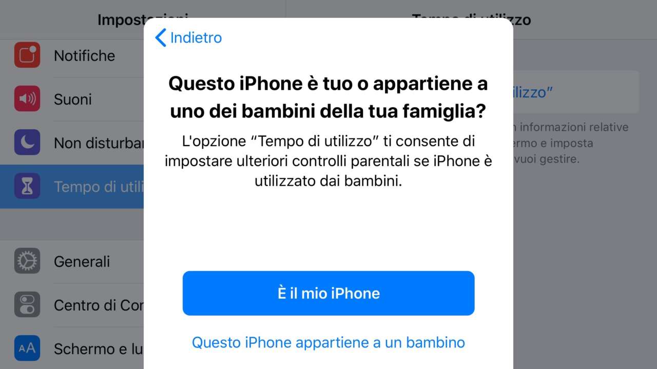 iOS presenta una serie di informazioni sulla funzionalità e, proseguendo nella procedura (dopo aver toccato Continua), chiede di specificare a chi appartiene il dispositivo.