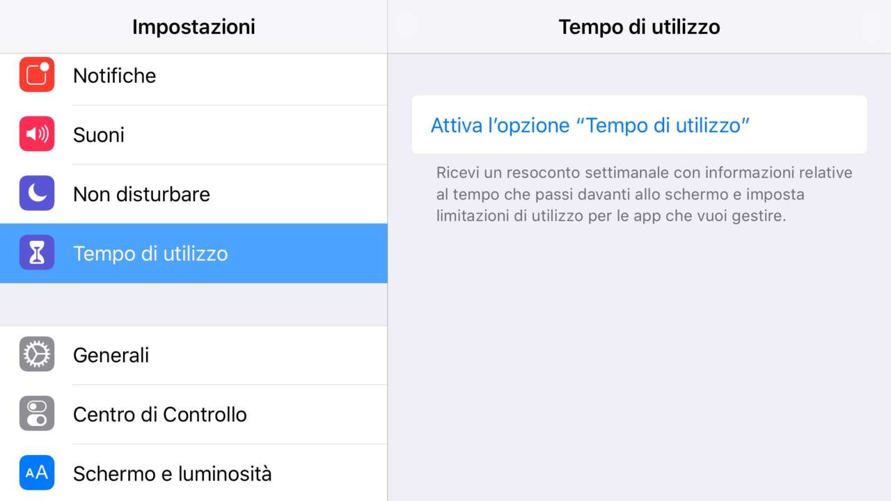 In questa schermata, tocca Attiva l’opzione “Tempo di utilizzo”.