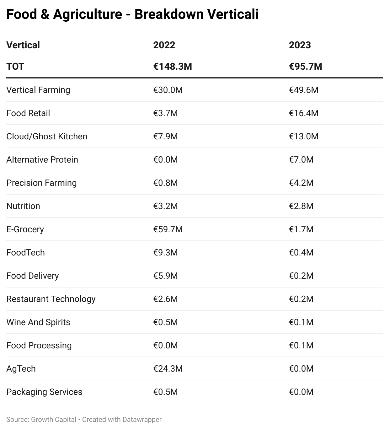 [GROWTH CAPITAL] TAB_ Food _ Agriculture_ breakdown verticali
