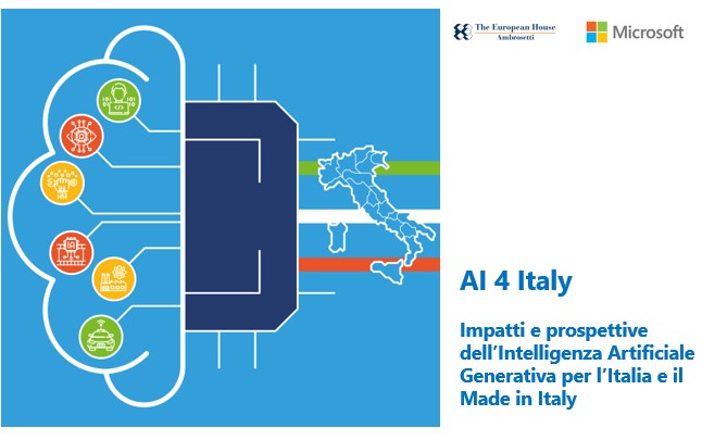 Rispondere a queste domande è l’obiettivo che si è posto lo Studio “AI 4 Italy: Impatti e prospettive dell’Intelligenza Artificiale Generativa per l’Italia e il Made in Italy”, elaborato da The European House – Ambrosetti in collaborazione con Microsoft Italia presentato oggi, nell’ambito del Forum di The European House – Ambrosetti, in una conferenza stampa cui hanno preso parte anche Vincenzo Esposito (Amministratore Delegato di Microsoft Italia) e uno degli Advisor scientifici dell’iniziativa Giorgio Metta (Direttore Scientifico, Istituto Italiano di Tecnologia). La ricerca, realizzata da The European House – Ambrosetti, si è posta l’obiettivo di analizzare, in chiave pioneristica e innovativa, l’impatto economico e sociale dell’intelligenza artificiale generativa sul nostro Paese, analizzandone presupposti tecnologici, implicazioni etico-sociali e di policy.