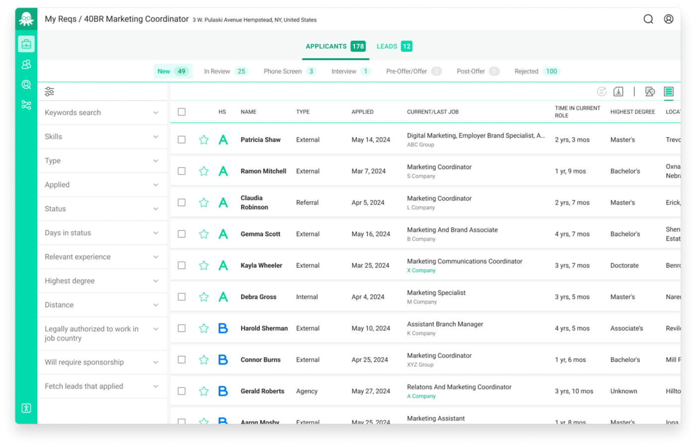 - Consentire ai recruiter e ai manager di riscoprire talenti tra i candidati precedenti e pool di talenti che non sono attivamente in cerca di lavoro, aiutando le organizzazioni a mantenere i contatti con i candidati altamente qualificati per future offerte lavorative.
