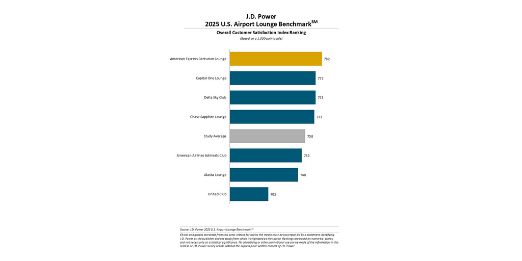 The U.S. Airport Lounge Benchmark measures customer satisfaction with airport lounges in the United States across eight core dimensions (in order of importance): value of experience; staff; food and beverage; cleanliness/upkeep; amenities; ease of accessing lounge; ambiance and Wi-Fi service. The 2025 study is based on responses gathered from 1,430 travelers who visited a U.S. airport lounge in the past year. The study was fielded from September through October 2025.
