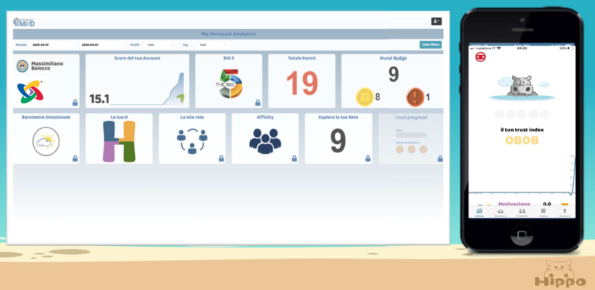 Hippo è una app che sfrutta l’intelligenza artificiale e l’analisi predittiva, permettendo di applicare i principi del “nudging” e delle scienze comportamentali alle interazioni di ogni giorno, lavorative e non.