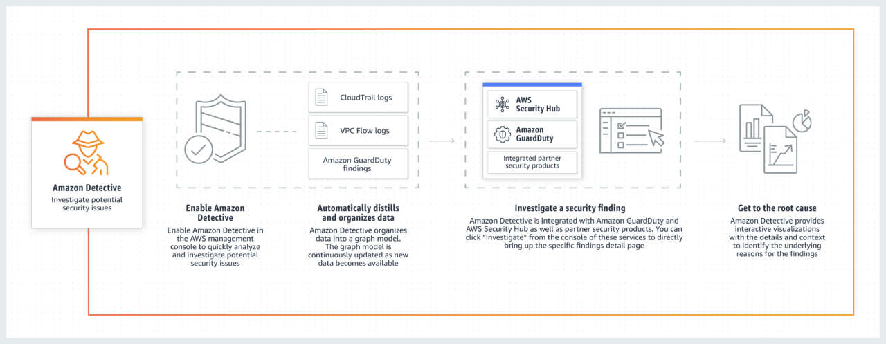 Qui entra in gioco Amazon Detective, che aiuta i team di sicurezza a condurre indagini più rapide ed efficaci. Una volta abilitato, con pochi clic, nella AWS Management Console, Amazon Detective inizia automaticamente a estrarre e organizzare i dati da AWS CloudTrail, Amazon VPC Flow Log e Amazon GuardDuty, in un modello grafico che riassume i comportamenti delle risorse e le interazioni osservate nell’ambiente AWS di un cliente.