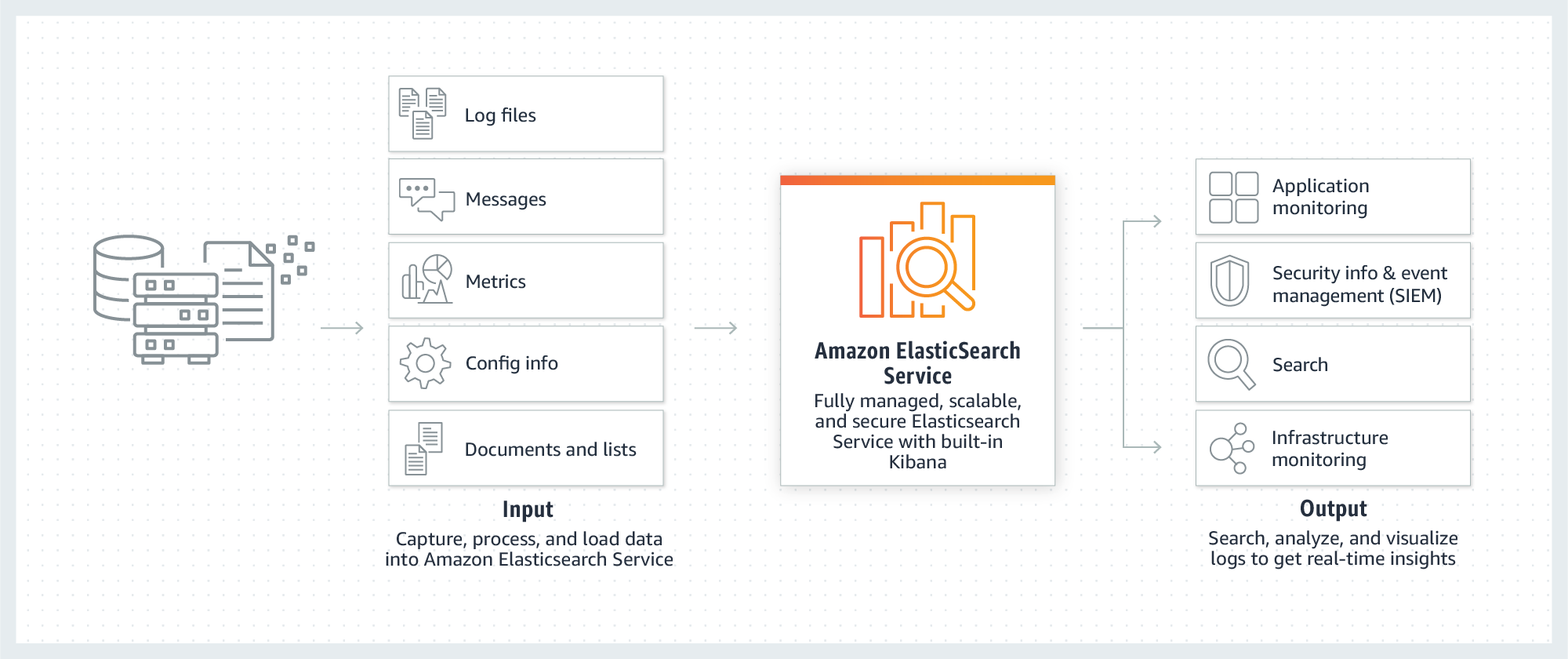 Amazon Elasticsearch Service è il servizio completamente gestito di Aws che semplifica la raccolta, l’analisi e la visualizzazione dei dati di log generati da siti web, dispositivi mobili e sensori.