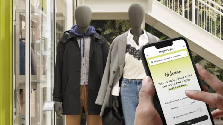 Con l’app Amazon Shopping, le persone hanno la possibilità di inviare gli articoli a un camerino, dove possono usare un touchscreen per sfogliare più opzioni, valutare i prodotti e richiedere altre taglie o stili. Questi, vengono poi consegnati direttamente nel camerino in pochi minuti.