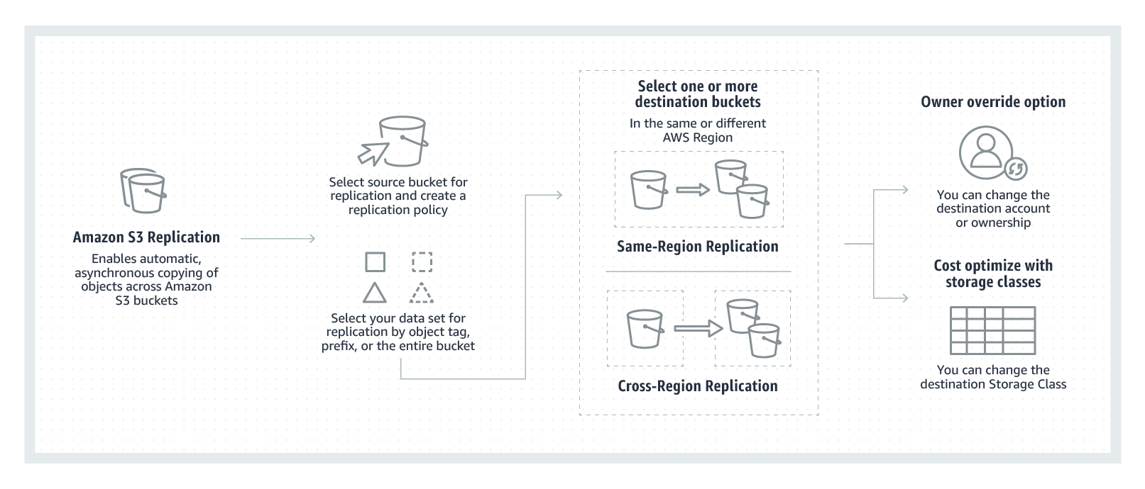 Per replicare gli oggetti esistenti tra i bucket, i clienti Aws dovevano creare processi complessi. Inoltre, la copia di oggetti tra bucket non conserva i metadati degli oggetti come l’ID della versione e il tempo di creazione dell’oggetto.