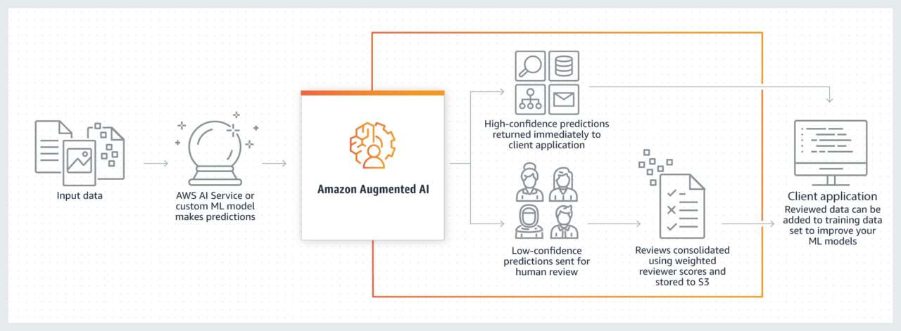 Svelato per la prima volta alla fine dello scorso anno, Amazon Web Services (Aws) ha annunciato ora la disponibilità generale di Amazon Augmented Artificial Intelligence (A2I), un servizio completamente gestito che semplifica l’aggiunta di revisioni umane alle previsioni di machine learning.