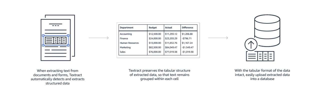 Questo, sostiene Amazon, avviene perché le tecnologie OCR esistenti non sono in grado di riconoscere layout comuni come moduli e tabelle, e generano solo un text dump lungo e spesso impreciso. Ciò di cui le organizzazioni hanno bisogno, e che desiderano, è invece la capacità di identificare ed estrarre con precisione testo e dati da moduli e tabelle in documenti di qualsiasi formato e da una varietà di tipi di file e modelli.