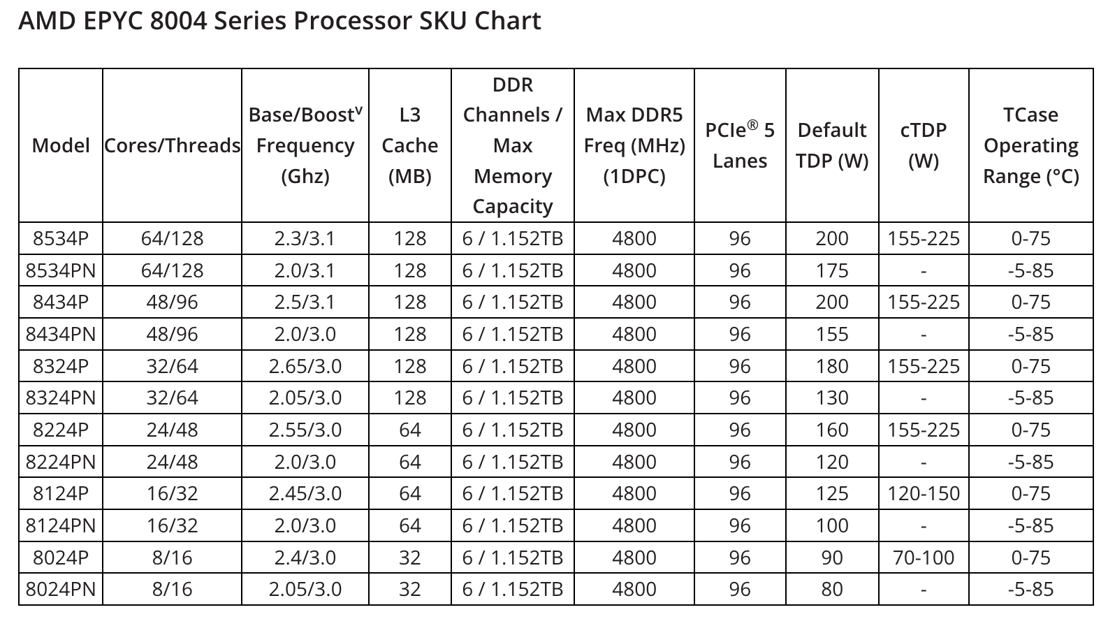 I processori AMD EPYC serie 8004 estendono la leadership in termini di prestazioni ed efficienza della famiglia EPYC di quarta generazione ai mercati che cercano prestazioni elevate, ma che hanno anche requisiti significativi in termini di efficienza energetica, densità della piattaforma e silenziosità.