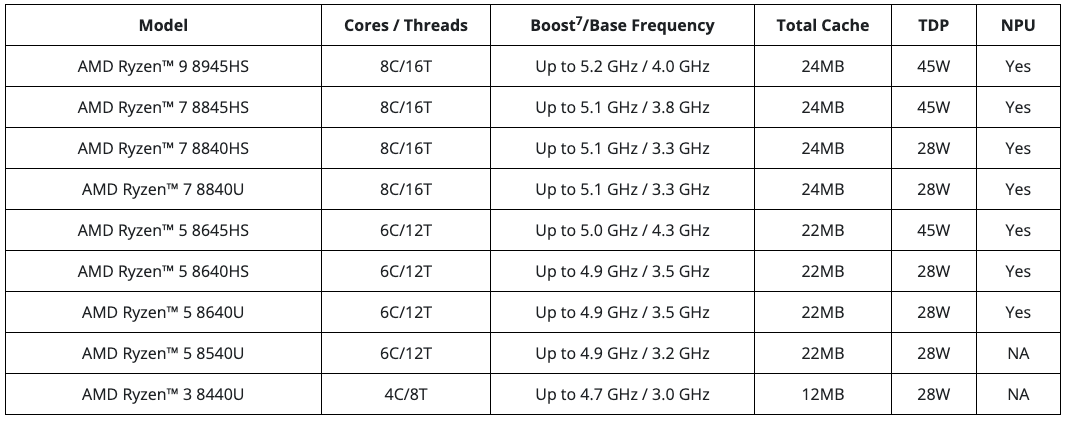 I processori AMD Ryzen 8040 Series – mette in evidenza l’azienda – sono gli ultimi ad aggiungersi al potente portafoglio di processori della serie Ryzen e dovrebbero essere ampiamente disponibili presso i principali OEM, tra cui Acer, Asus, Dell, HP, Lenovo e Razer, a partire dal primo trimestre del 2024.