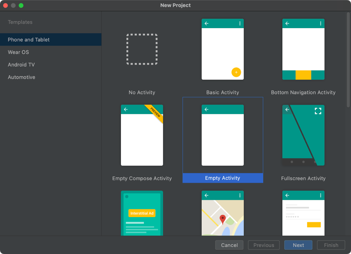 Questa release include poi un refresh visuale al nuovo project wizard, studiato per rendere più facile scoprire i tipi di dispositivi Android. Google ha inoltre aggiunto ViewBinding a ciascuno dei modelli e aggiornato i wizard dei moduli per rendere più facile capire la varietà di tipi di moduli che è possibile aggiungere alla propria app.