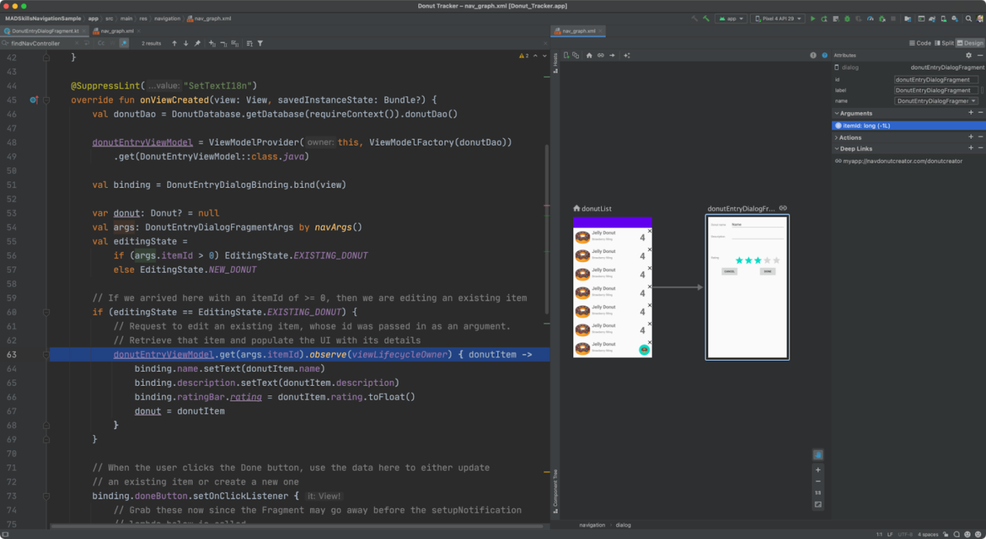 L’uso di Safe Args è il modo raccomandato per garantire l’incapsulamento quando occorre passare i dati tra due destinazioni nella propria app e si utilizza il componente Jetpack Navigation. Con Android Studio 4.2, ora gli sviluppatori hanno a disposizione il completamento automatico del codice per Directions Args e la navigazione del codice dal sorgente all’XML.
