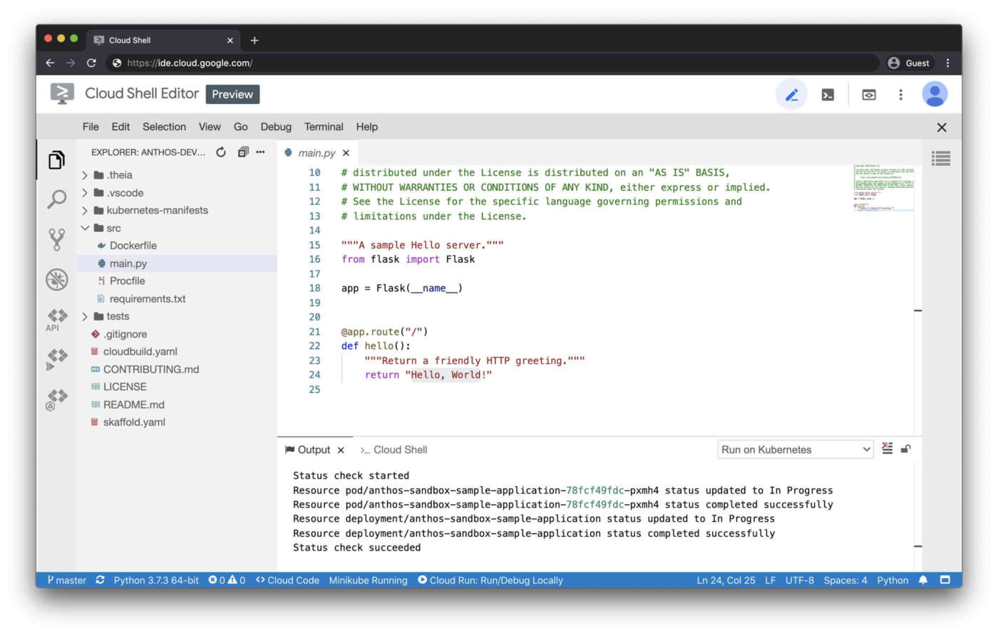 Anthos Developer Sandbox include alcuni strumenti abbinati a un flusso guidato per imparare a utilizzarli.