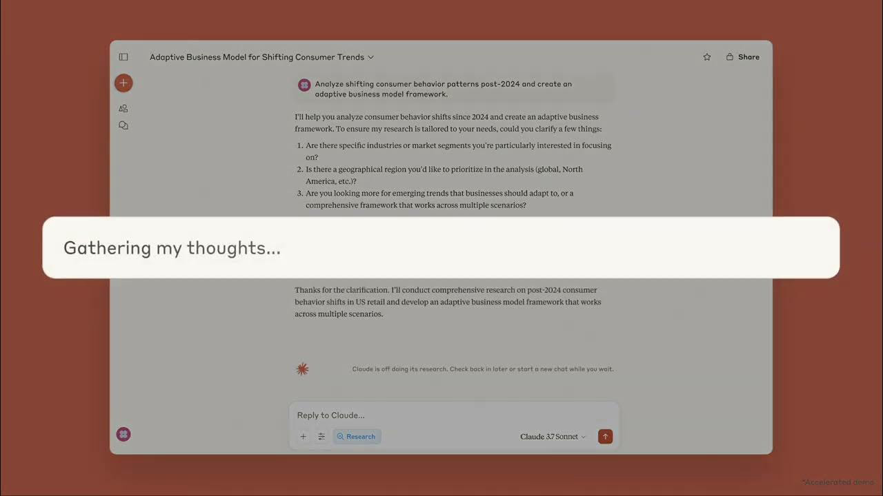 Con la nuova capacità di effettuare ricerche più complesse, disponibile quando si attiva il pulsante Ricerca, Claude suddivide la richiesta in parti più piccole, indagando a fondo su ciascuna di esse prima di compilare un rapporto completo. Mentre la maggior parte dei report viene completata in 5-15 minuti, Claude può impiegare fino a 45 minuti per le indagini più complesse, che in genere richiederebbero ore di ricerca manuale.