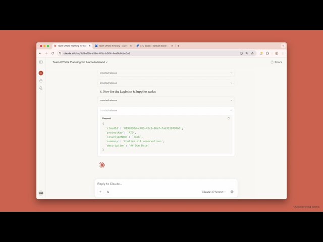 Con l’accesso a Jira e Confluence di Atlassian, Claude può collaborare con l’utente alla creazione di nuovi prodotti, gestire le attività in modo più efficace e scalare il lavoro riassumendo e creando più pagine Confluence e work item Jira contemporaneamente.