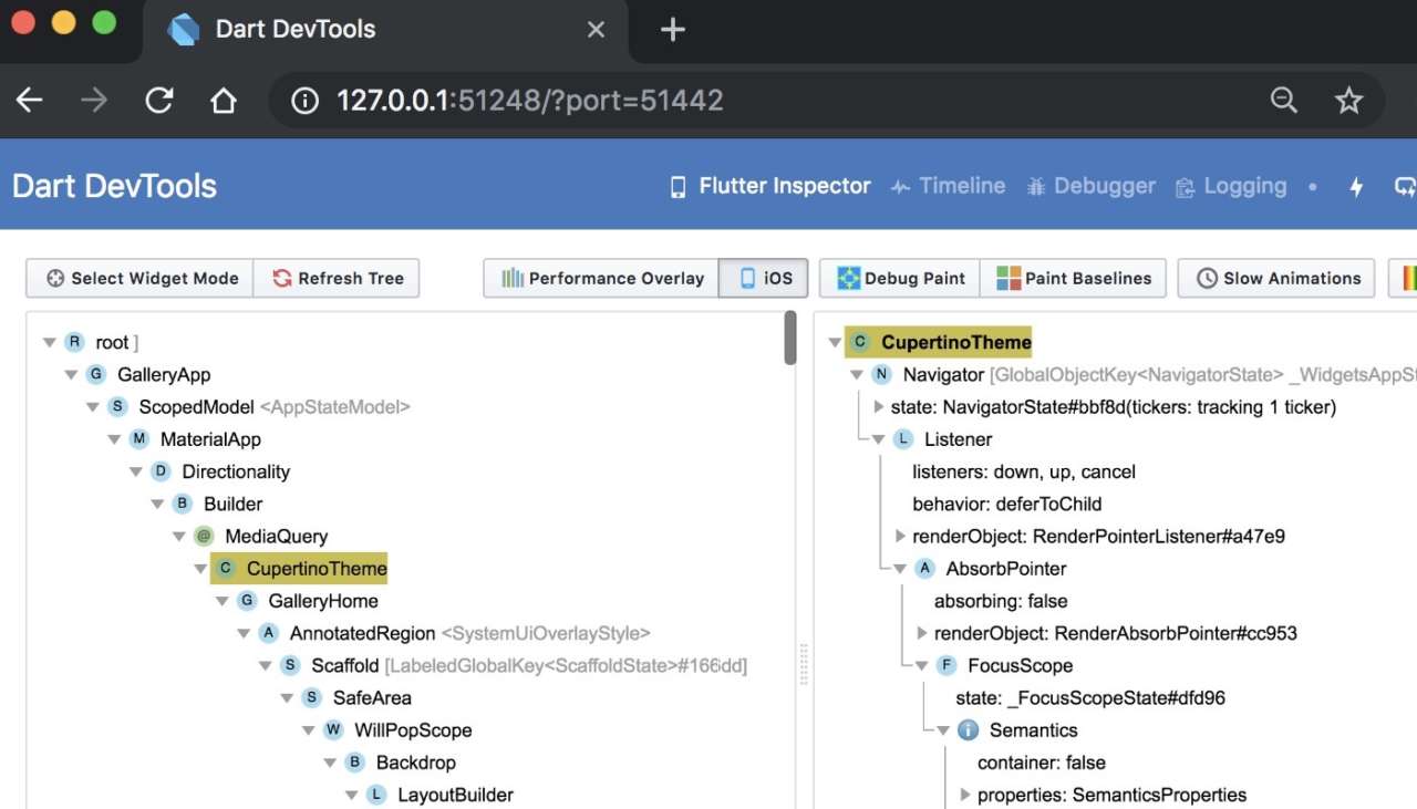 La suite offre una serie di funzionalità. Tra queste, un widget inspector che consente la visualizzazione e l’esplorazione della gerarchia ad albero che Flutter utilizza per il rendering. Una timeline view aiuta invece a diagnosticare l’applicazione a un livello di frame per frame. Identificando il lavoro di rendering e di calcolo che potrebbe causare “jank” nelle animazioni delle app.