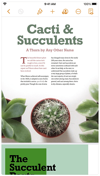 Le ultime versioni iOS e iPadOS di Pages, Numbers e Keynote offrono anche controlli di editing precisi nell’inspector Disponi per regolare aspetto e posizionamento degli oggetti, così come tastierini numerici su schermo per facilitare l’inserimento dei valori esatti per proprietà quali le dimensioni del testo, la spaziatura e altre ancora.
