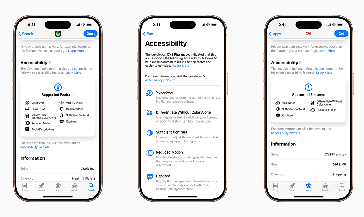 Queste includono VoiceOver, Voice Control, Larger Text, Sufficient Contrast, Reduced Motion, didascalie e altro ancora. Le etichette sull’accessibilità saranno disponibili sull’App Store in tutto il mondo e gli sviluppatori potranno accedere a maggiori indicazioni sui criteri che le app devono soddisfare prima di visualizzare le informazioni sull’accessibilità nelle pagine dei loro prodotti.