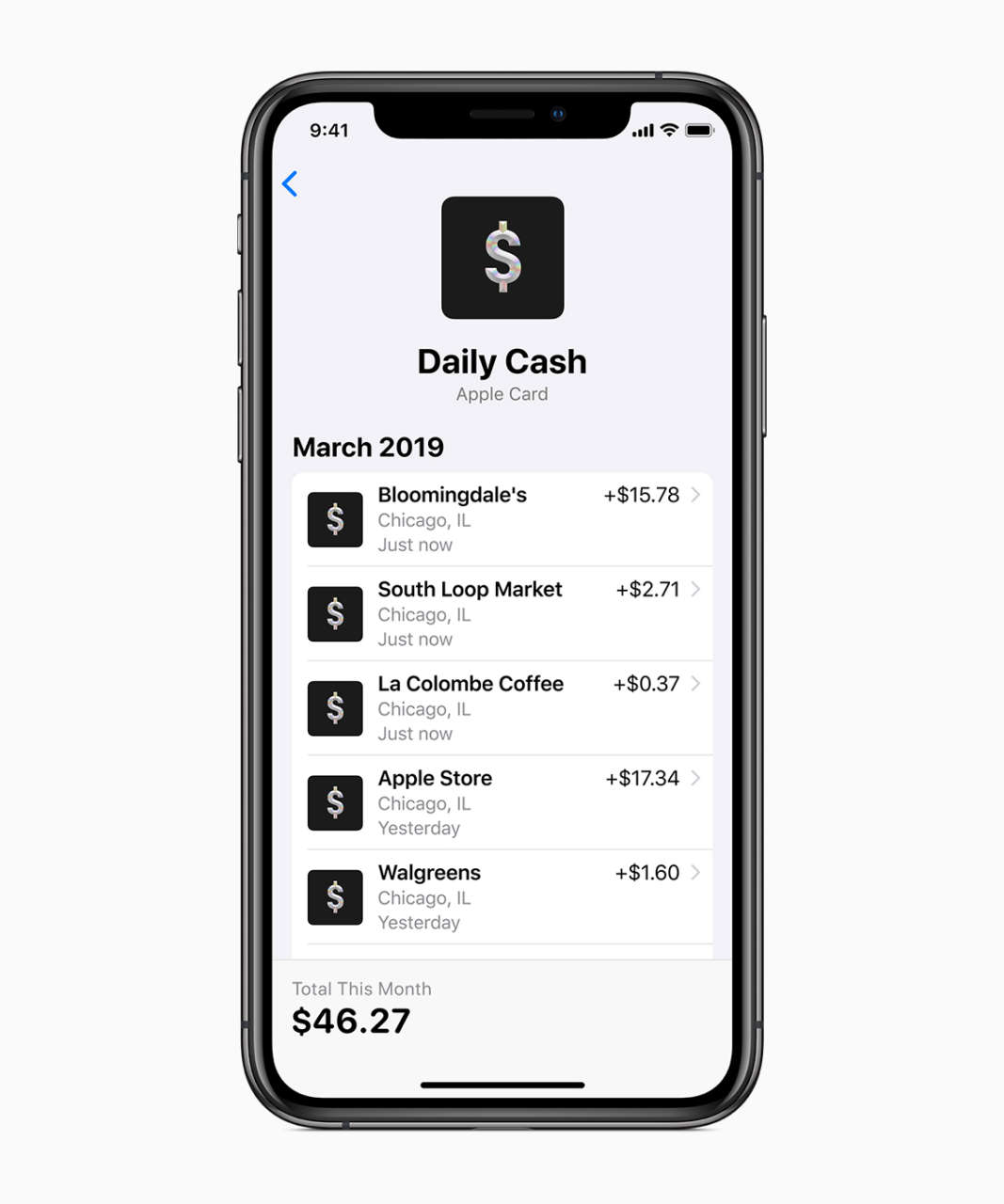 Apple Card offre anche un programma di reward denominato Daily Cash, che restituisce una percentuale per ogni acquisto. Il cash back viene accreditato anch’esso direttamente sulla Apple Card dell’utente, ogni giorno, non dopo un lungo lasso di tempo. I soldi ”restituiti” possono essere subito utilizzati per altri acquisti Apple Card o Apple Pay.