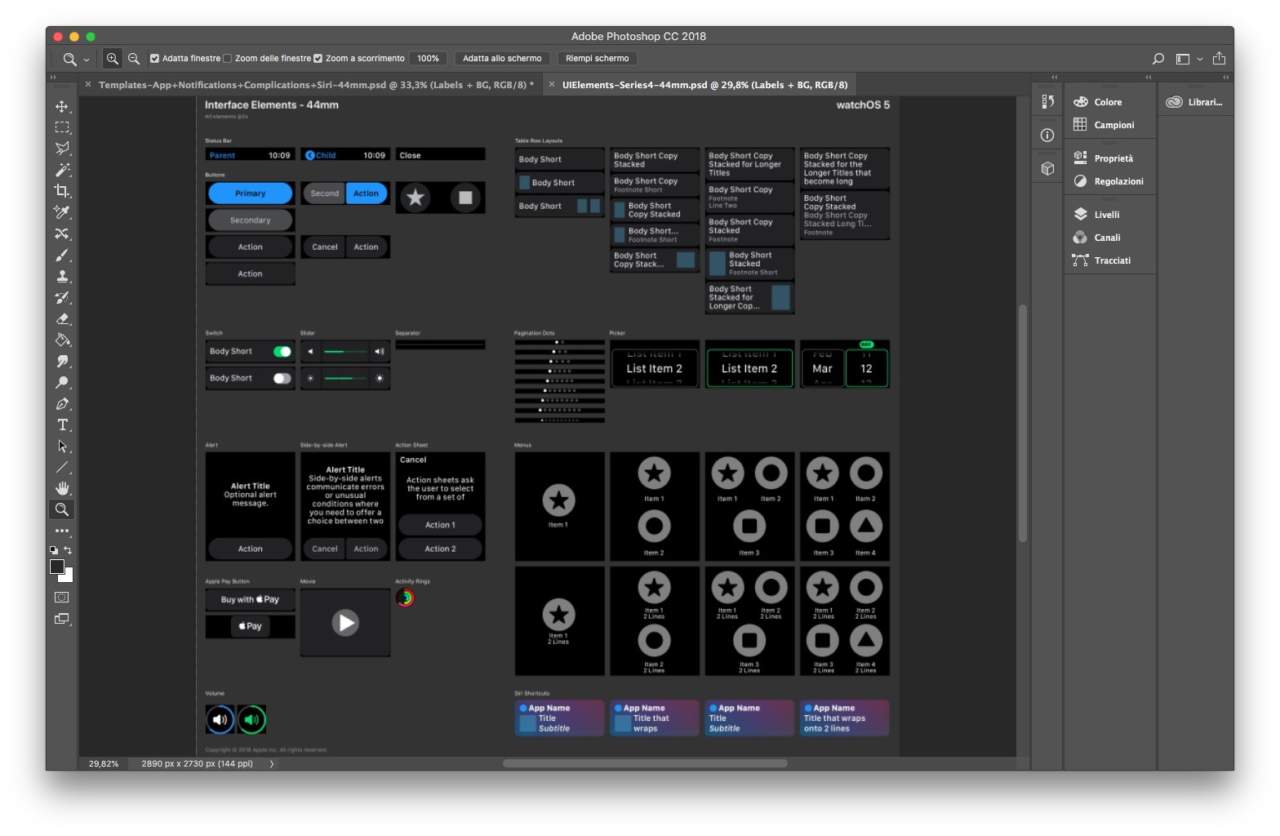 Come per gli altri device del marchio, Cupertino offre tutto il materiale di supporto agli sviluppatori, nel portale dedicato. Nella sezione di risorse per il design, gli asset sono ora aggiornati per watchOS 5 e Apple Watch Series 4.