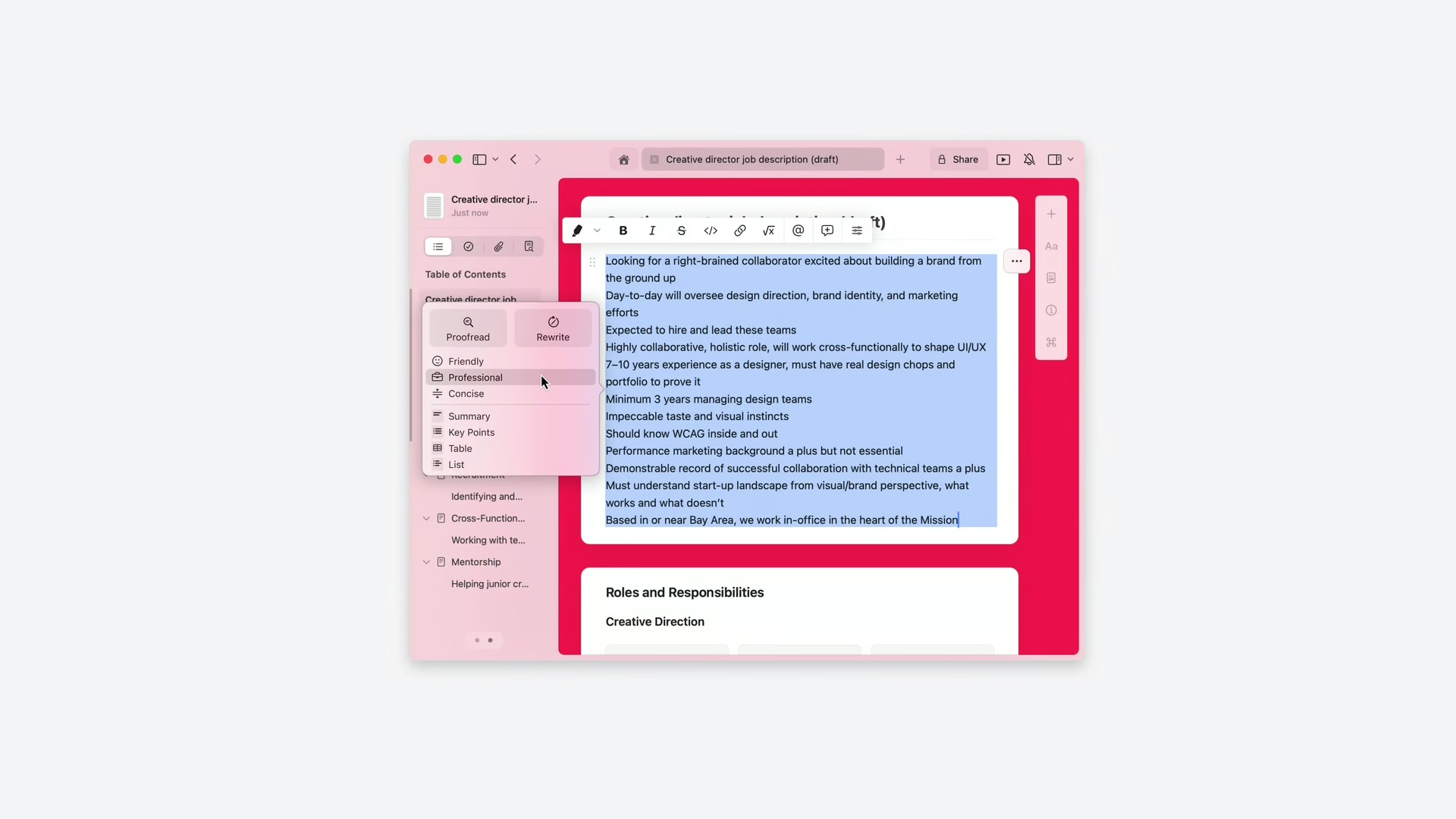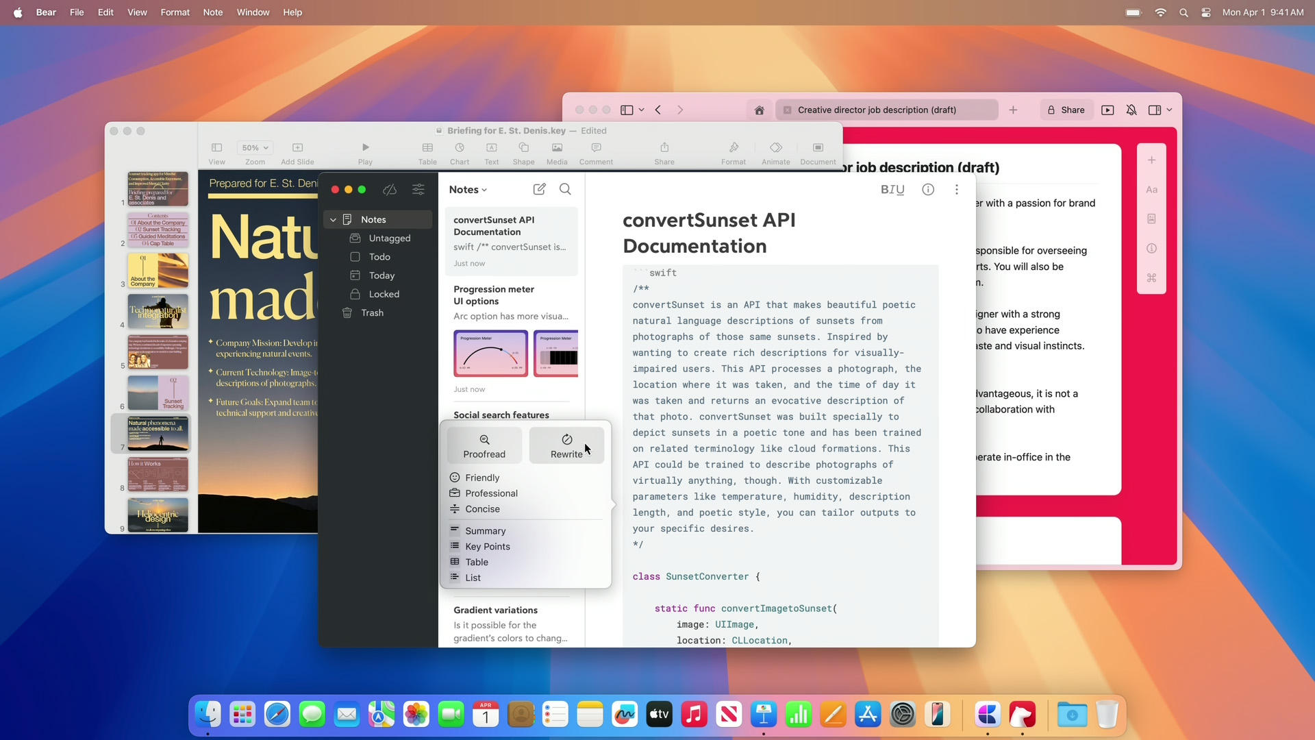Profondamente integrati in iOS, iPadOS e macOS, gli Strumenti di scrittura consentono agli utenti di perfezionare il proprio linguaggio riscrivendo, correggendo e riassumendo il testo praticamente ovunque scrivano, compresi Mail, Messaggi, Note, Pages e app di terze parti.